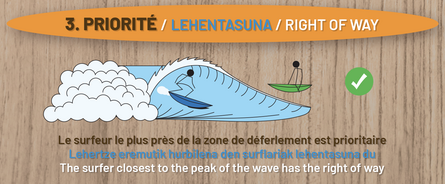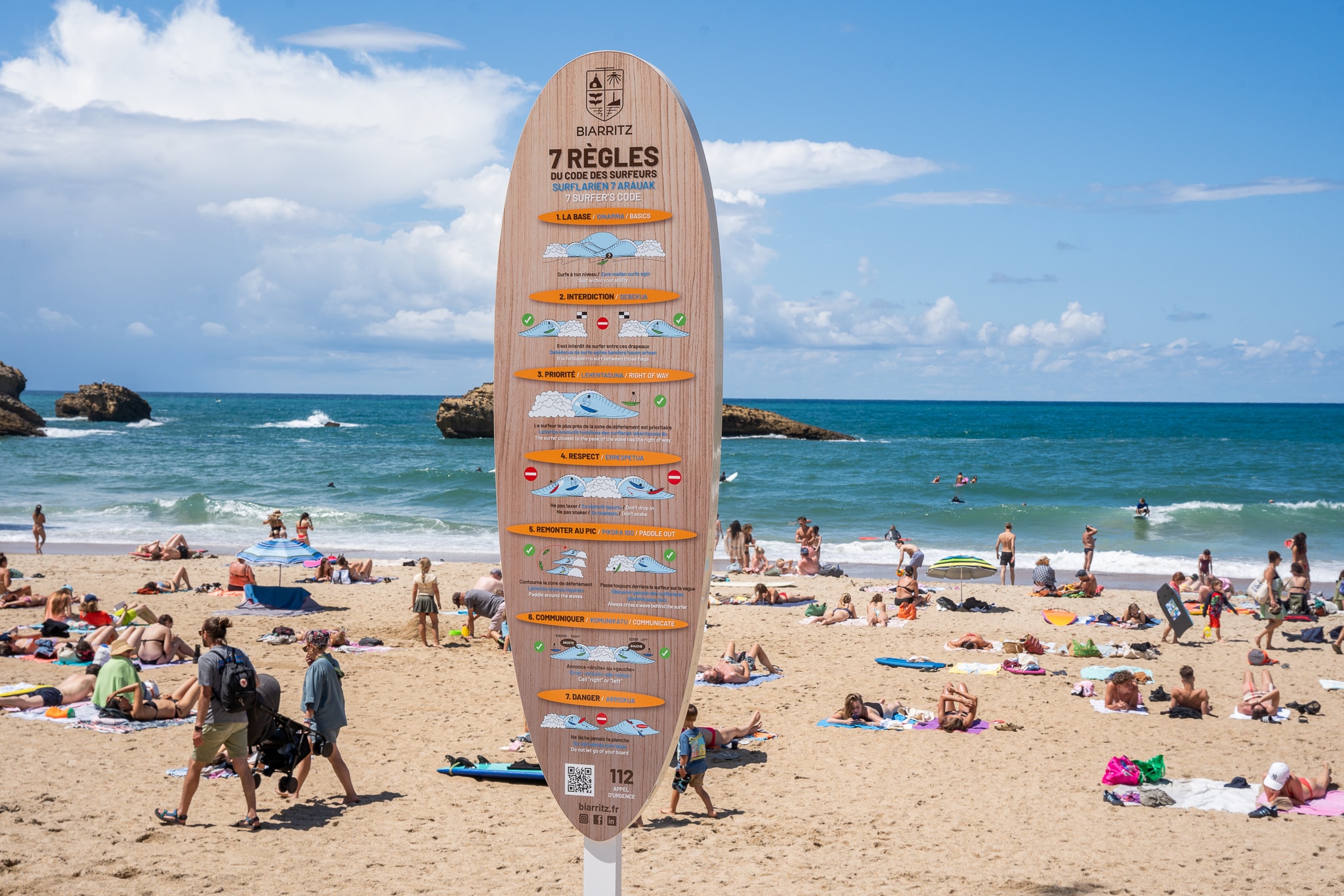 La Ville de Biarritz encourage tous les surfeurs à respecter le code des surfeurs. Le code du surf est un ensemble de conseils de sécurité universels, de règles et de lois non écrites qui s’appliquent à tous les surfeurs, qu’ils soient jeunes ou vieux, débutants ou professionnels.