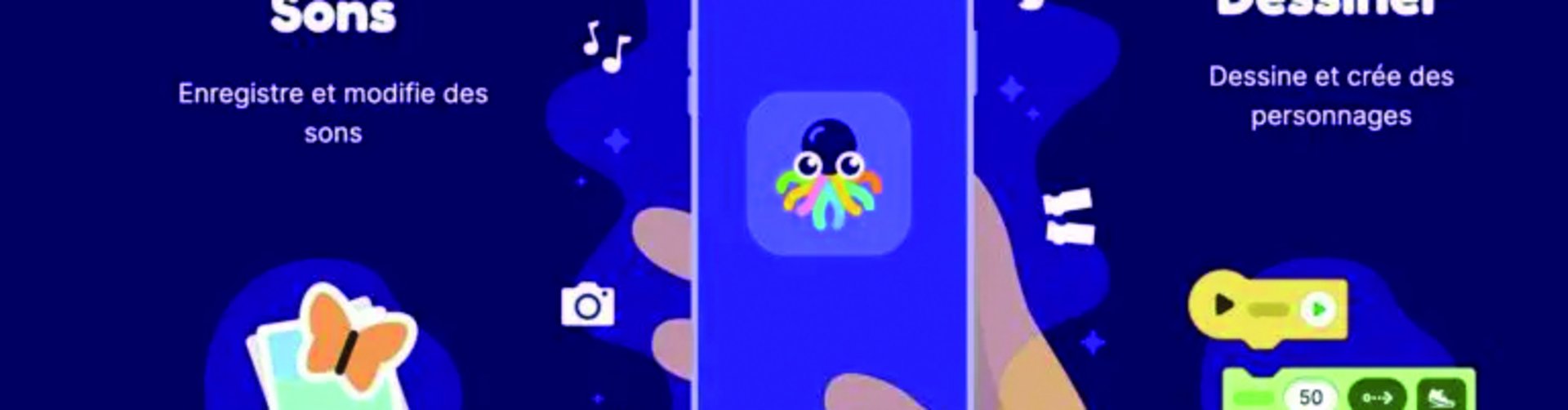 L’application Octostudio permet de créer des animations, des jeux et des projets interactifs en utilisant des photos, des dessins et des sons. Octostudio recourt à un système de blocs de code qui sont simples à comprendre. Ainsi, les enfants peuvent les assembler directement sur une tablette ou smartphone pour créer des actions, comme déplacer un personnage, jouer un son ou afficher une image.