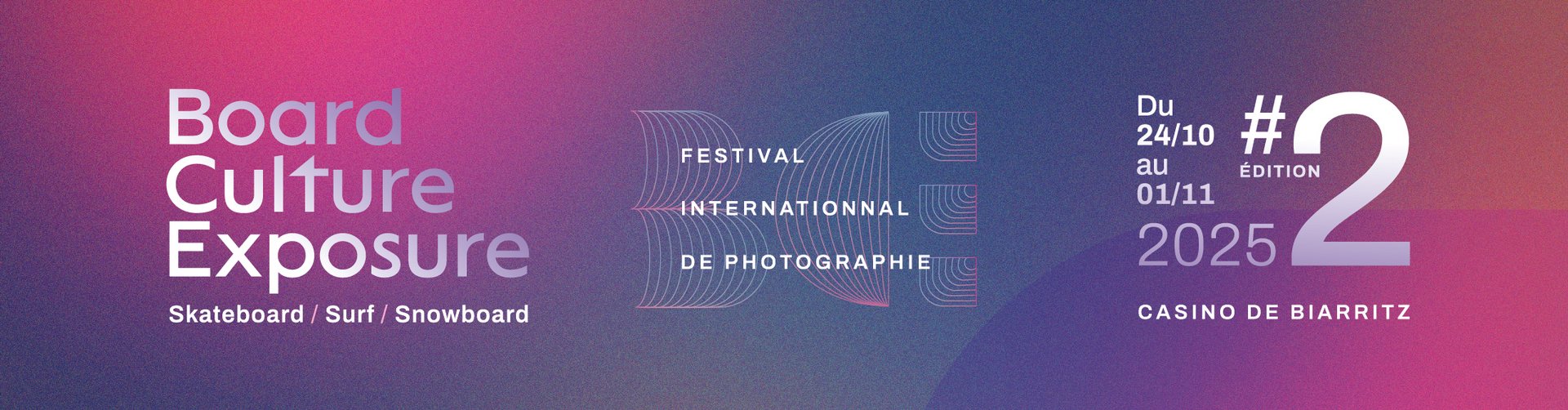Au programme, entre autres : cérémonie d’ouverture et de clôture, grande exposition et remise des prix des concours photos 2025 au Casino municipal ; soirée de projections de longs métrages au cinéma Le Royal ; rétrospective à la médiathèque ; expo collective sur le snowboard et concert électro avec DJ Falcon et Étienne de Crécy à l’Atabal ; journée dédiée à l’implication des femmes dans la board culture ; expo « surf » à ciel ouvert sur la plage du Port-Vieux ; projections de photos sur les façades de la ville ; conférences… Une 2e édition en grand-angle !