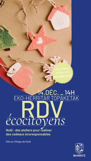 La Ville de Biarritz propose un rendez-vous écocitoyen le 14 décembre à 14h au marché de noël avec trois ateliers de 30 minutes pour réaliser des cadeaux responsables : un baume 100 % naturel, des tisanes personnalisées, un bracelet ou encore un porte-clé végétal.