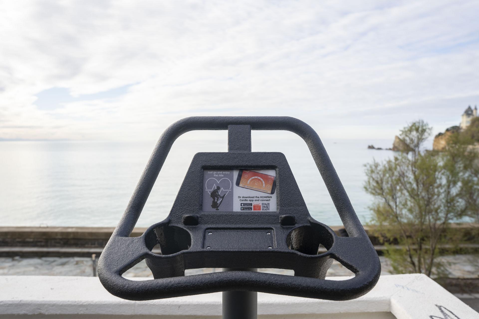 A la Côte des Basques : un vélo city bike et un vélo elliptique. (Au-dessus de l’abris côtier)